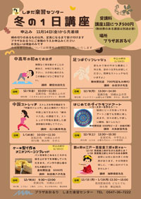 ●中高年の初めてのヨガ ●足つぼでリフレッシュ 受付終了 ●中国ストレッチ 受付終了 ●はじめてのダイヤモンドアート~コースターを作ろう~ ●ケーキ型で作るオニオンベーコンブレッド ●艶と粋の江戸~蔦屋重三郎を旅する~